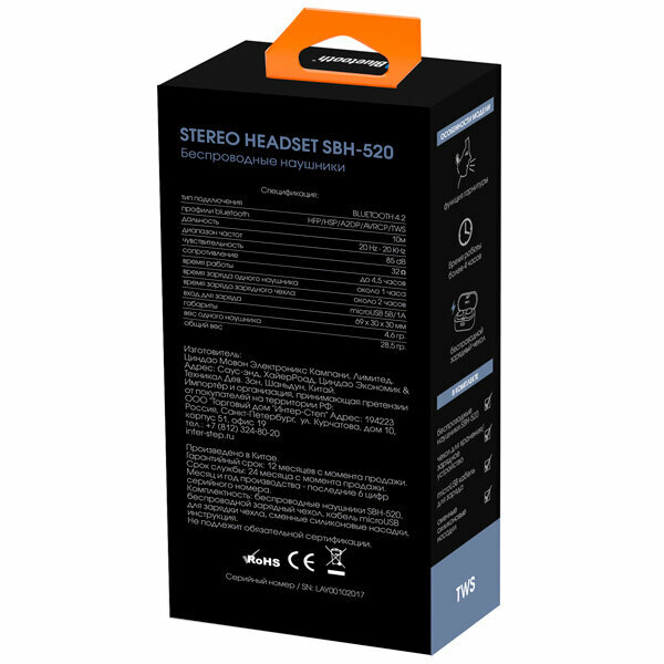 Купить Наушники True Wireless InterStep SBH-520 Stereo TWS Black