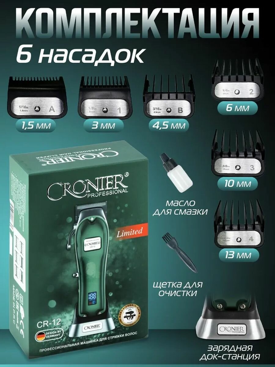 Профессиональный набор для парикмахера машинка для стрижки и триммер для окантовки / Профессиональная машинка и триммер для стрижки CRONIER интересное: