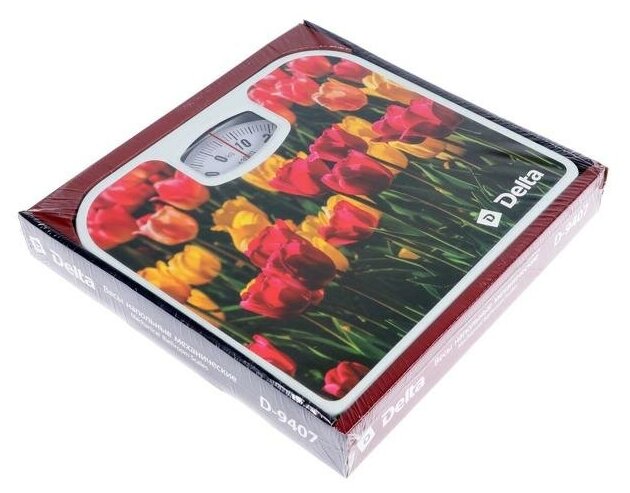 Весы напольные DELTA D-9407, механические, до 130 кг, картинка "Тюльпаны"