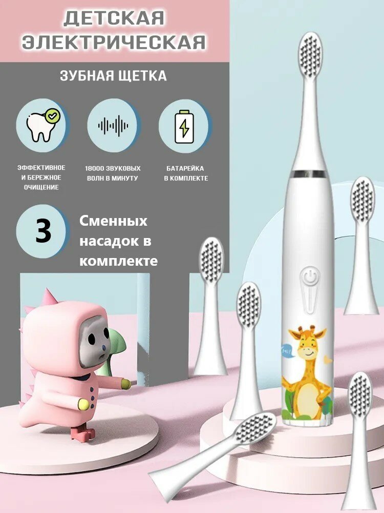 Детская зубная щетка, детская электрическая зубная щетка, электрощетка, 4 режима работы, 4 насадки, белый жираф интересное: