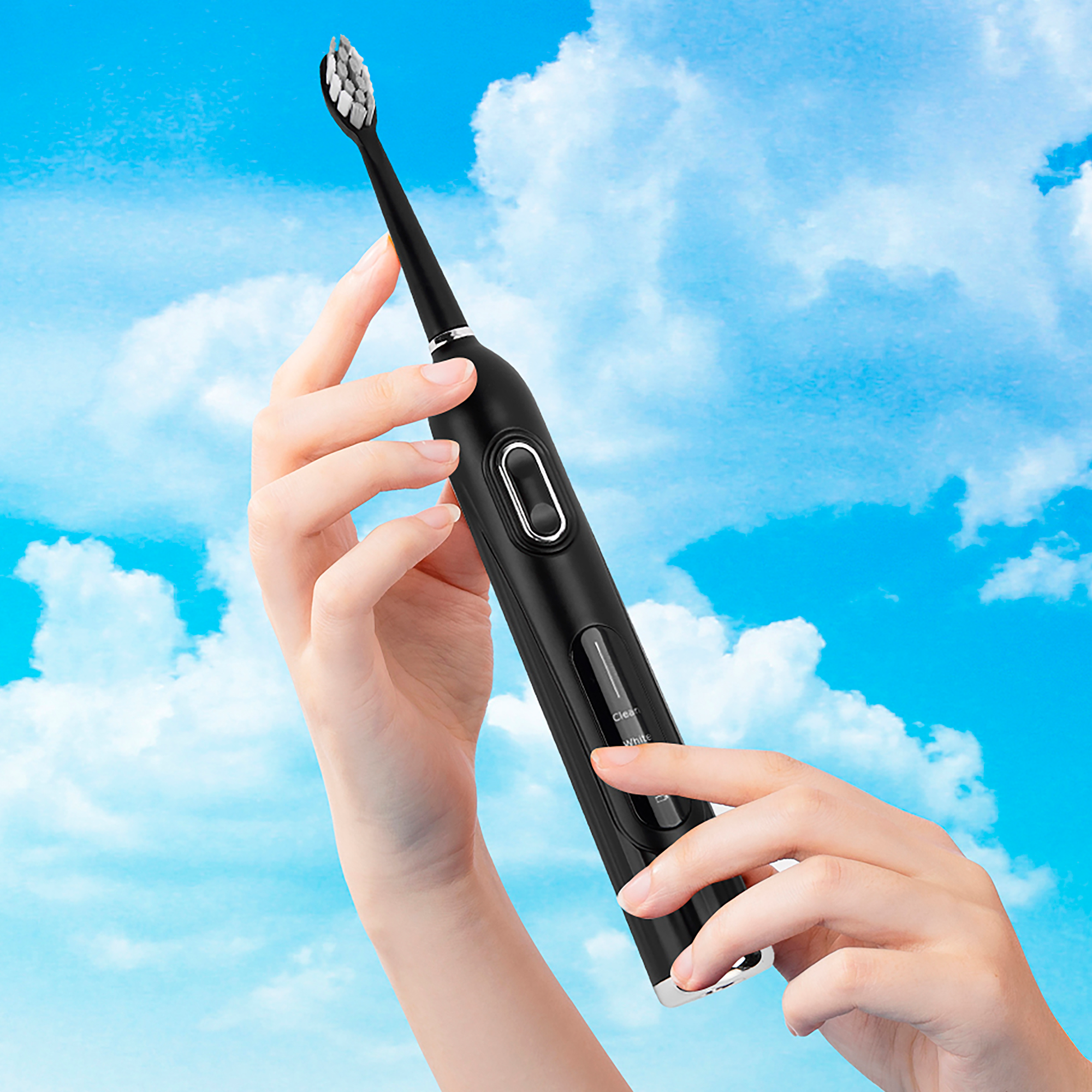 Купить Электрическая ультразвуковая зубная щетка черная Whitentice 3 режима, 7 уровней мощности, дорожный кейс