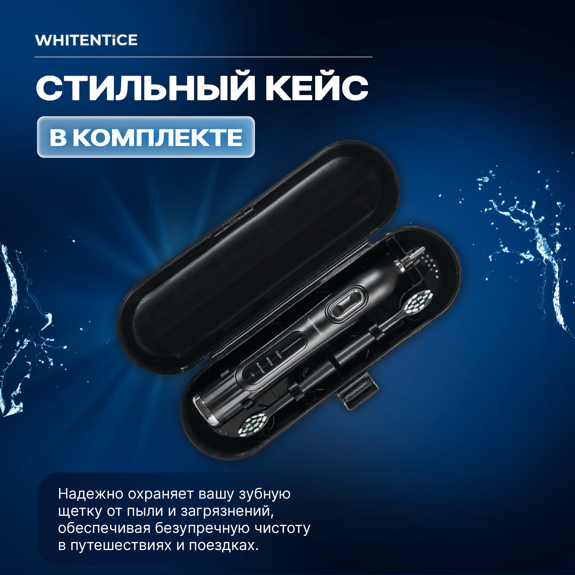 Электрическая ультразвуковая зубная щетка черная Whitentice 3 режима, 7 уровней мощности, дорожный кейс интересное: