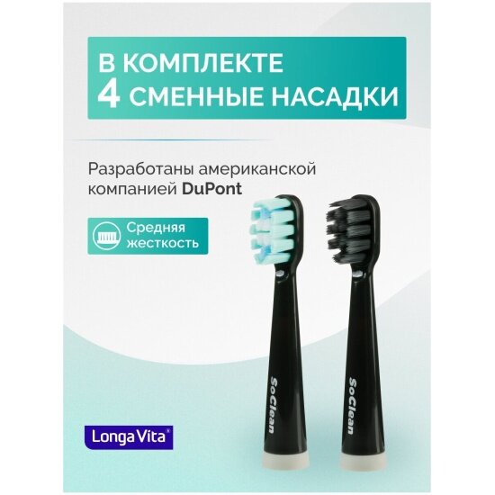 Longa Vita SoClean Электрическая зубная щетка для взрослых, 4 сменные насадки