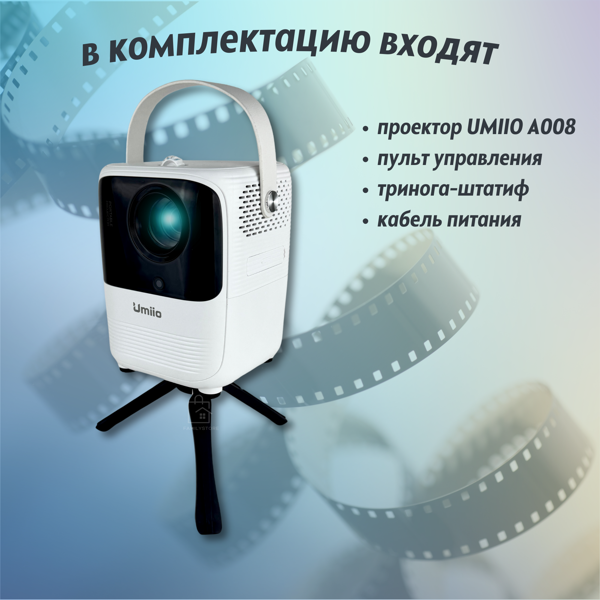 Проектор Umiio / Портативный проектор / Мини проектор Umiio / Full HD Android TV / Черный / Family Store Home