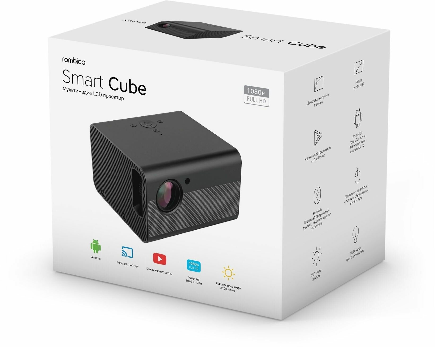 Проектор Rombica Ray Smart Cube чёрный (MPR-X410) интересное: