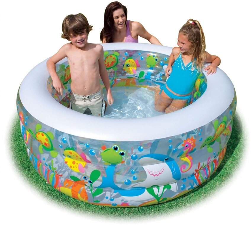 Купить Надувной бассейн 152х56см, детский бассейн "Аквариум" с надувным дном, от 6 лет