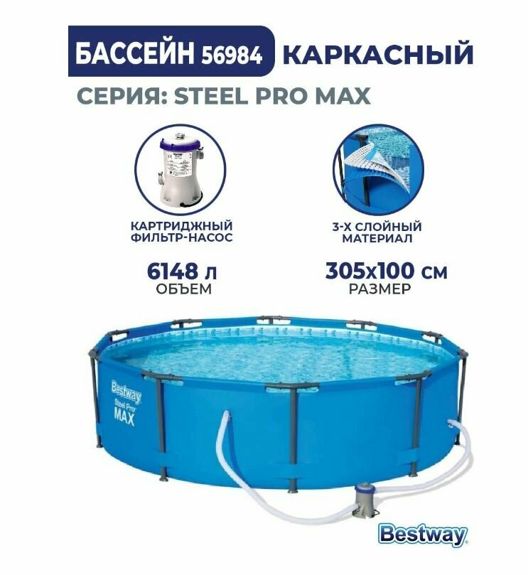 Каркасный бассейн Bestway Steel Pro Max 56984, 305х100 см (фильтр) интересное: