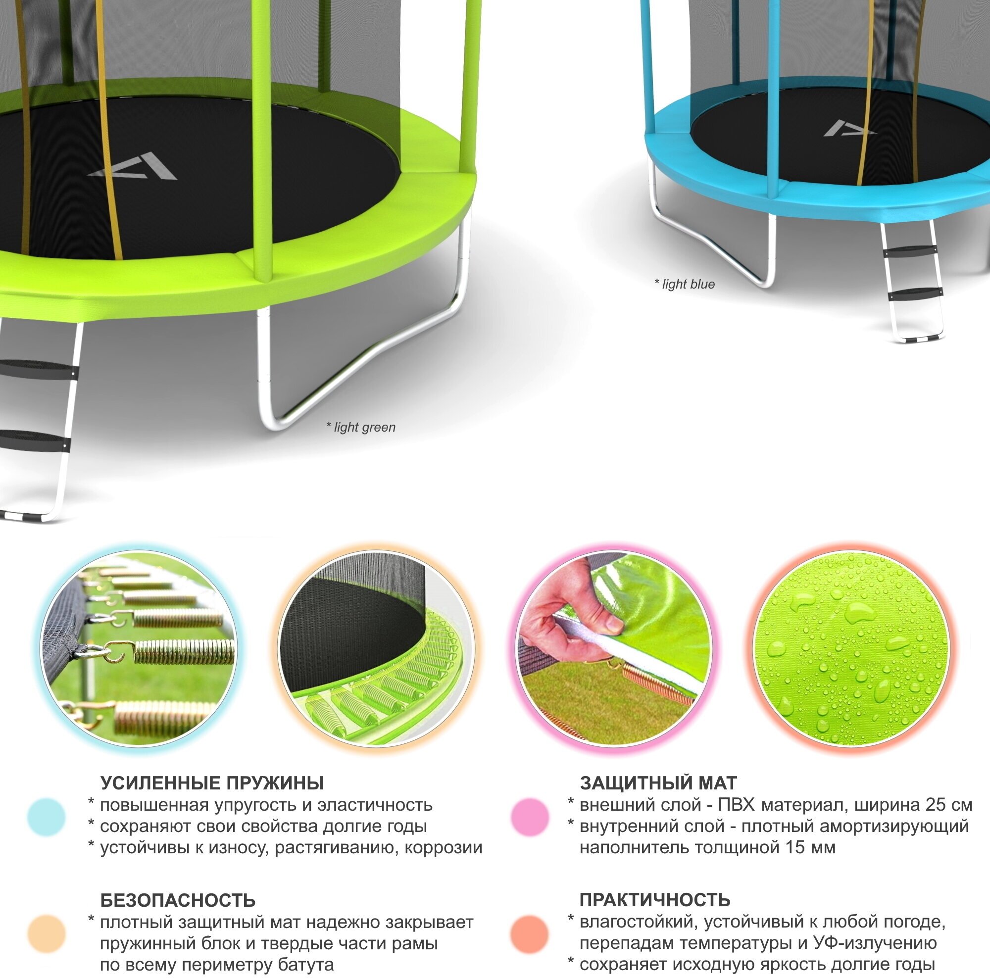 Ниже Вы можете прочитать отзывы на Каркасный батут Alfasport Absolute 10 FT 305x305x245 см (с сеткой и лестницей), light green, ознакомится с подробными характеристиками, посмотреть интересные обзоры и фотографии на Каркасный батут Alfasport Absolute 10 FT 305x305x245 см (с сеткой и лестницей), light green.