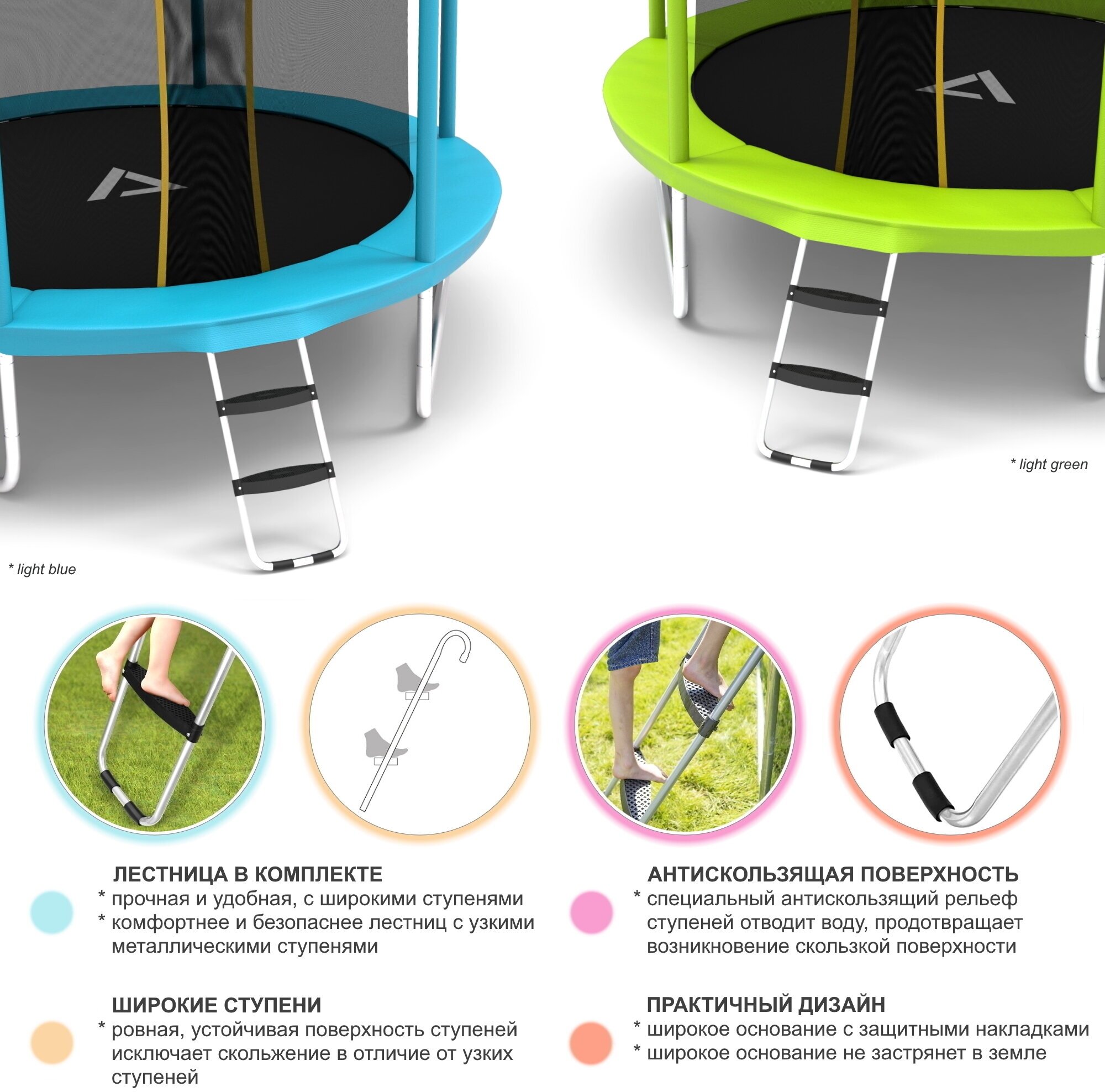 Каркасный батут Alfasport Absolute 10 FT 305x305x245 см (с сеткой и лестницей), light blue интересное: