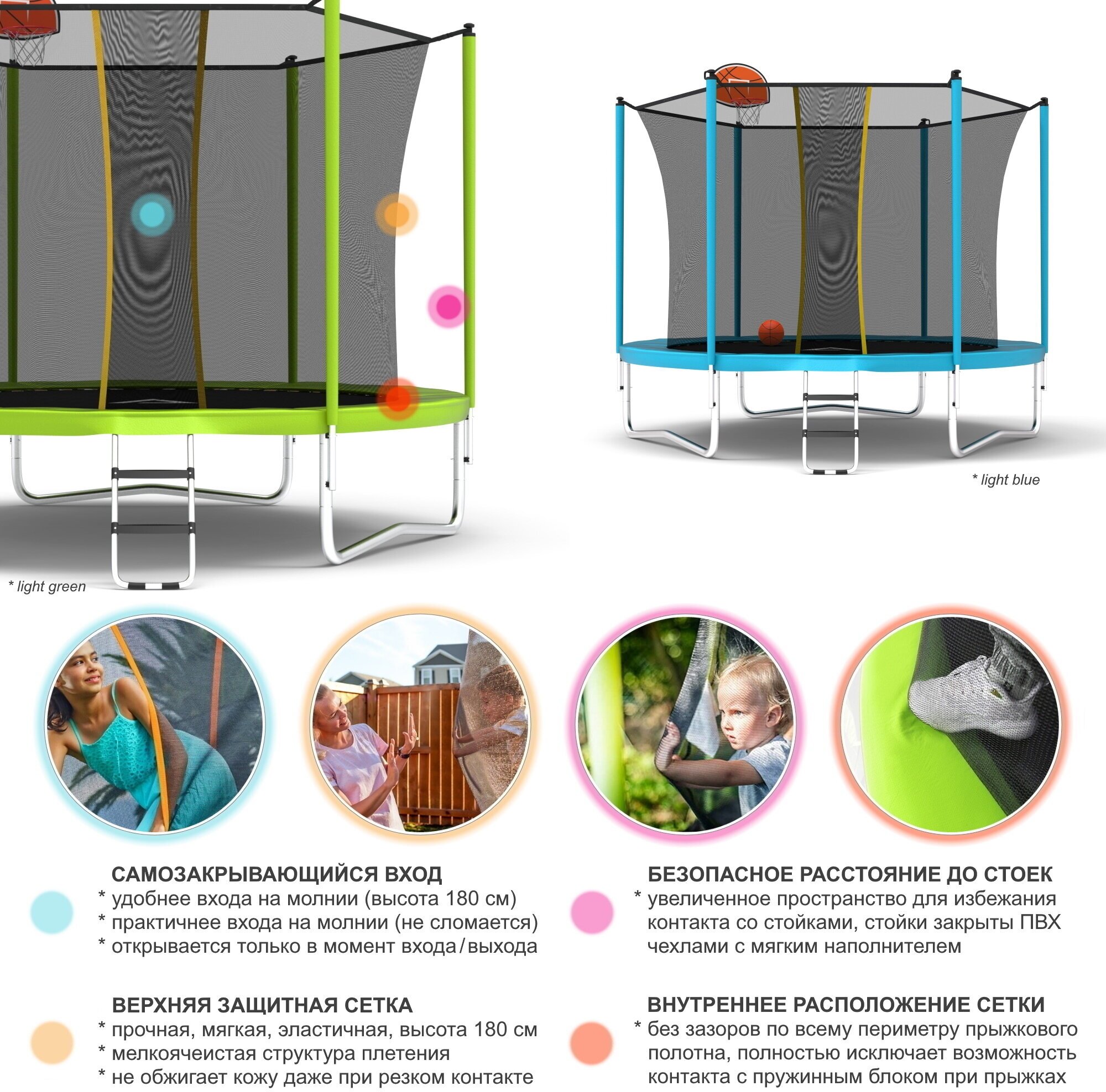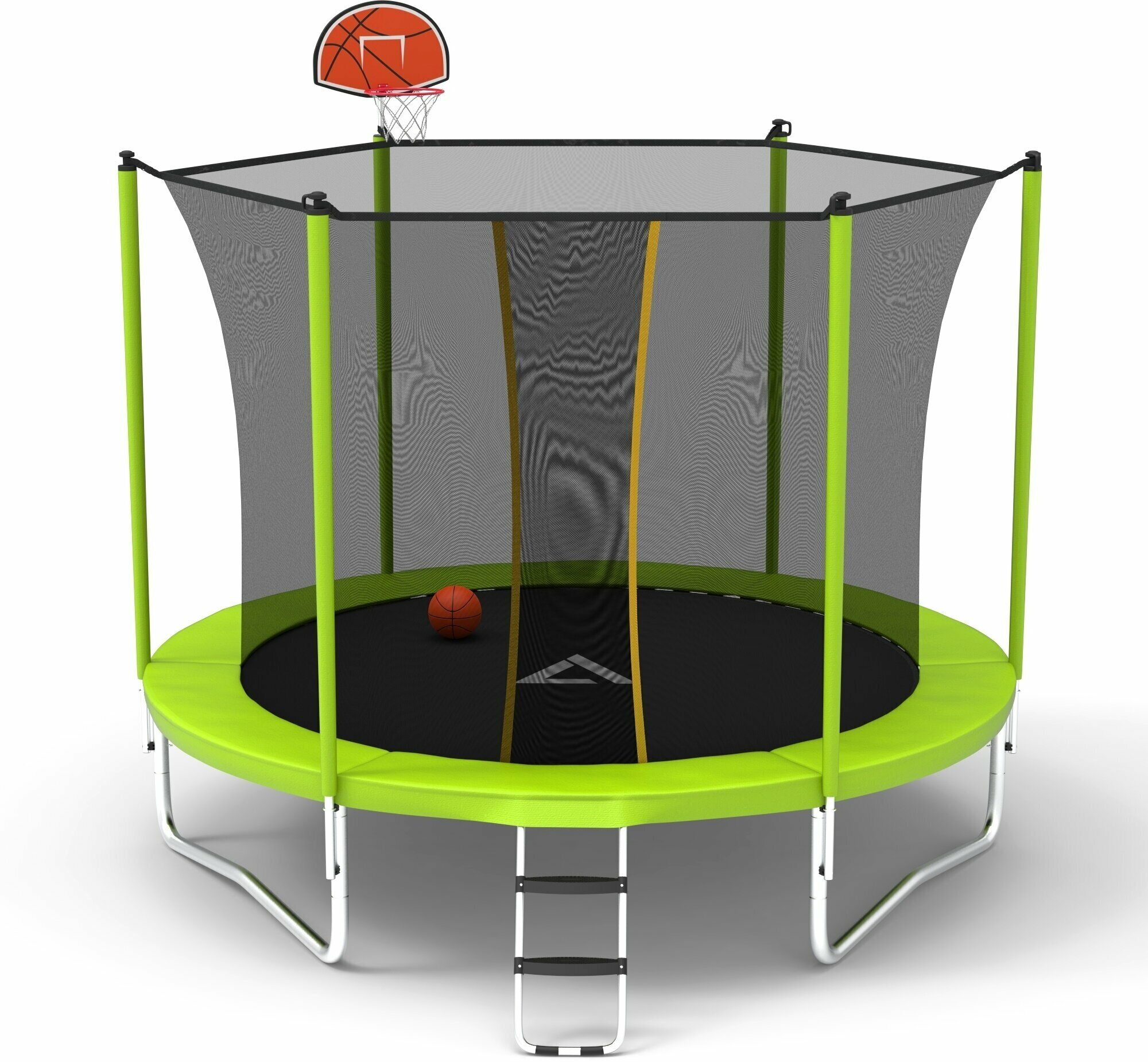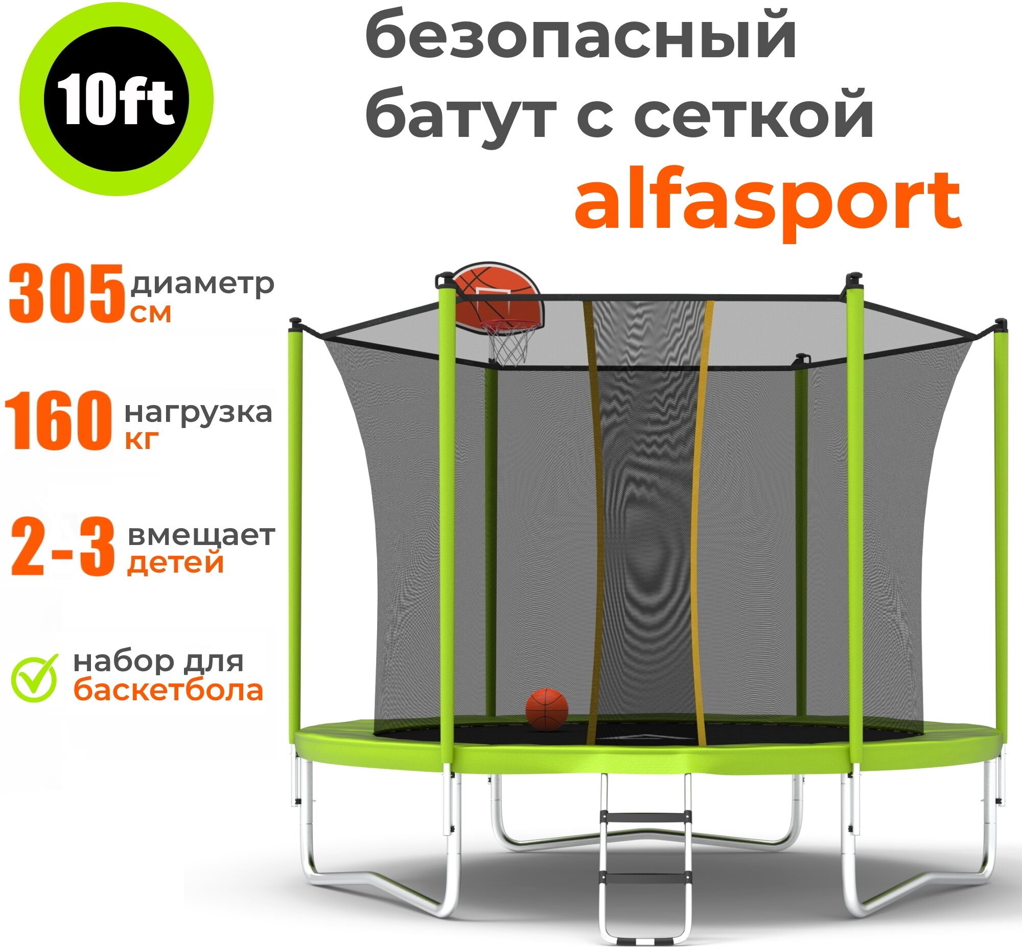 Каркасный батут Alfasport Classic 10 ft (Basketball) 305x305x245 см (с сеткой и лестницей), light green интересное: