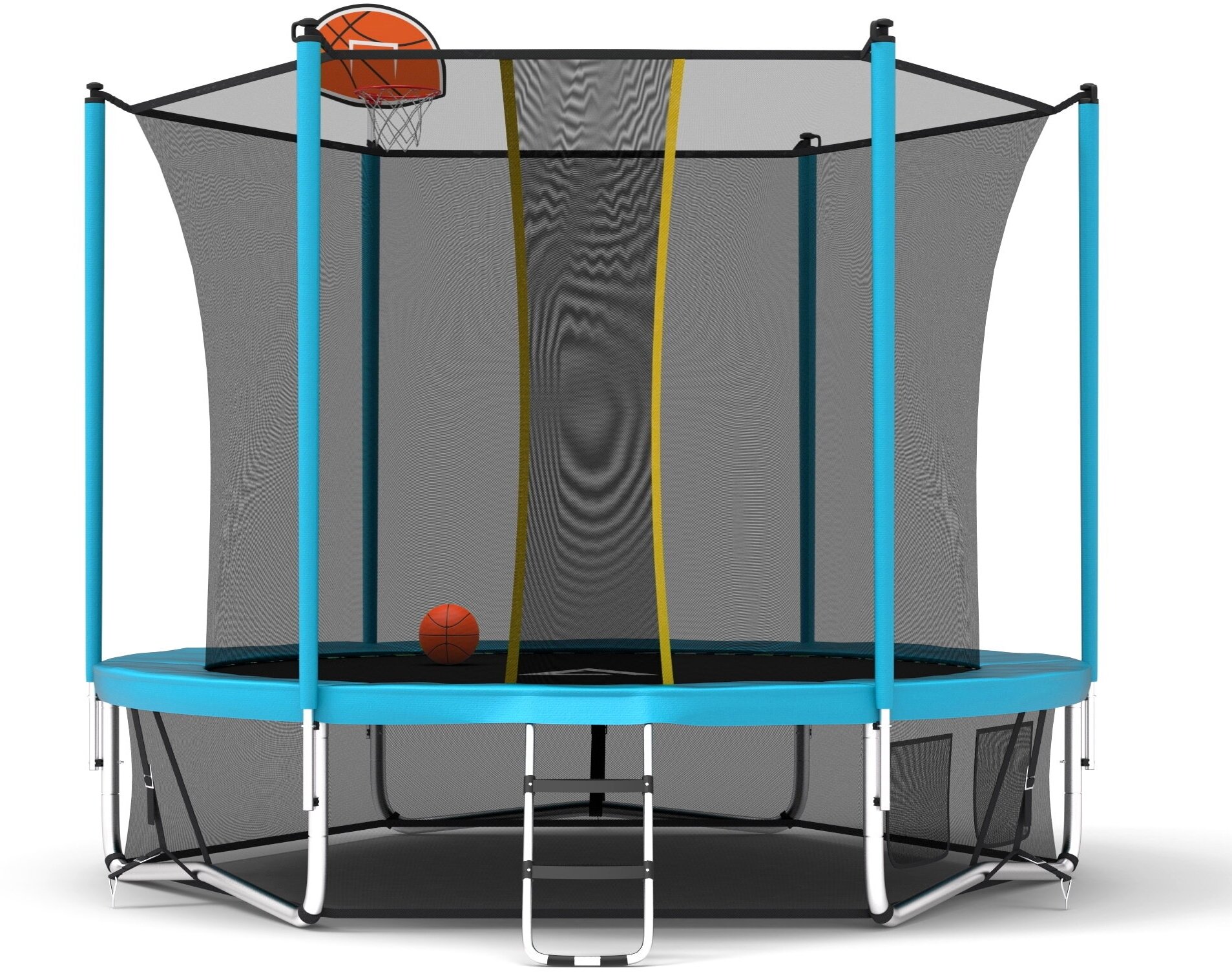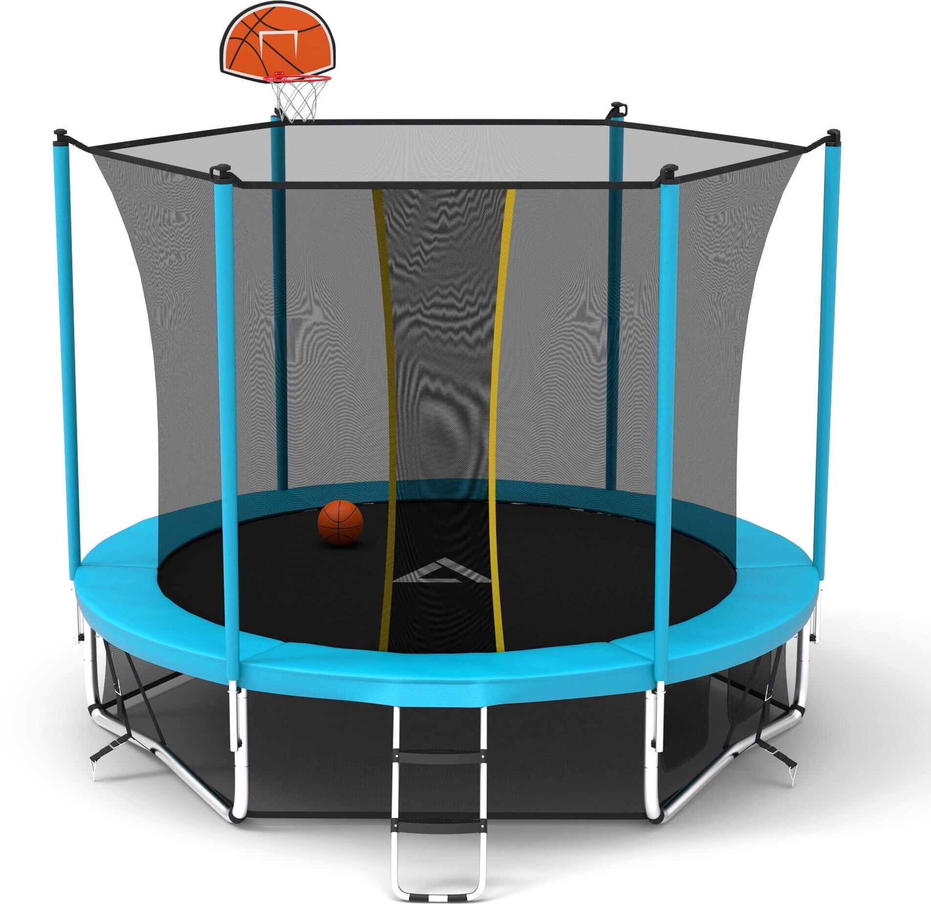 | Особенности | W-образные опоры / баскетбольное кольцо / защита пружин / нижняя защитная сетка / с защитной сеткой / с лестницей |