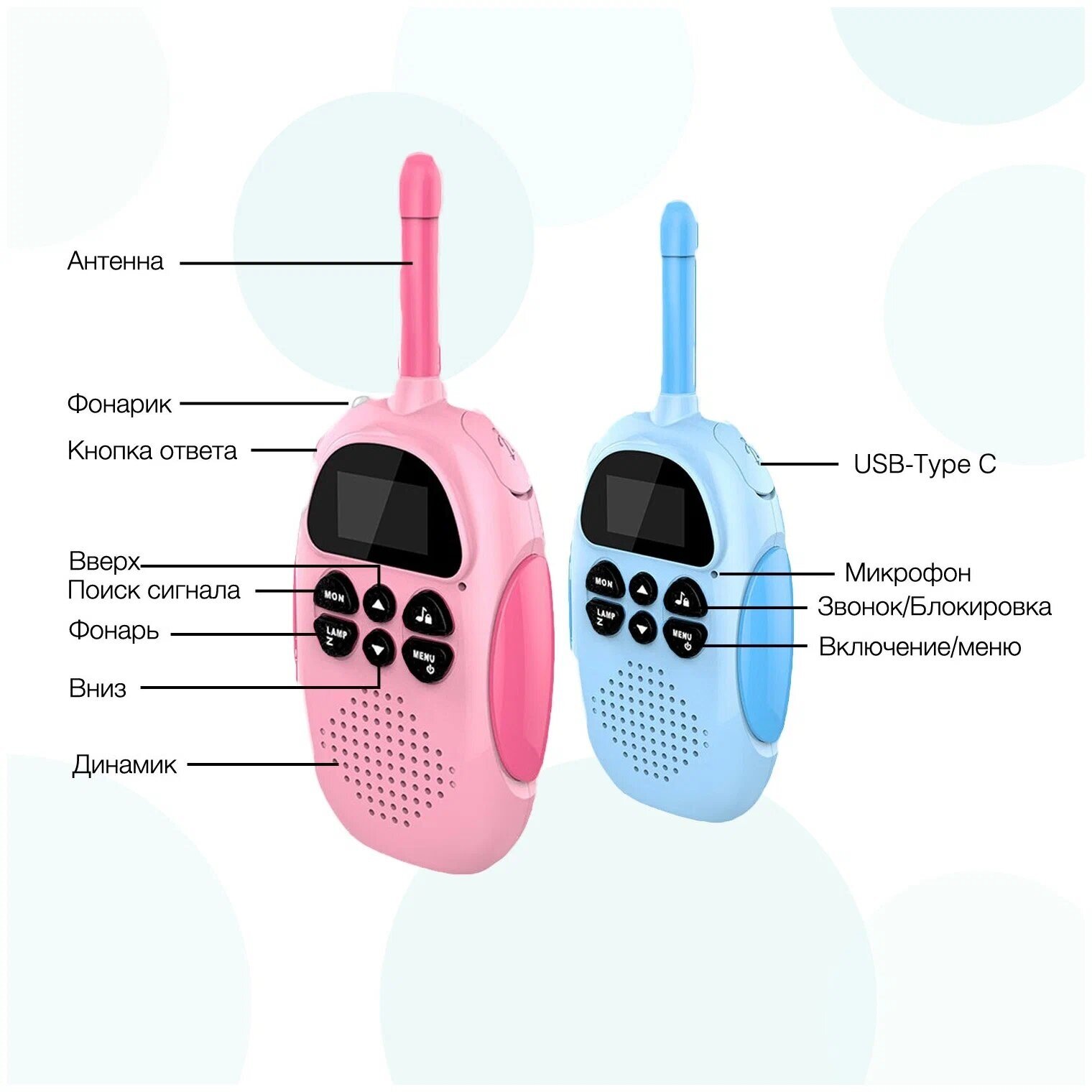 Купить S&H Electroniсs Комплект игровых раций для детей 8 мелодий, радионяня дальность 3 км. Детские рации, голубой, розовый
