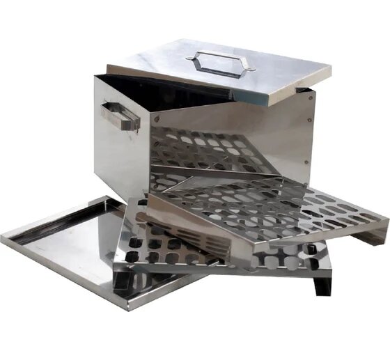 Коптильня двухъярусная малая, 35х25х20см нержавеющая сталь Петромаш