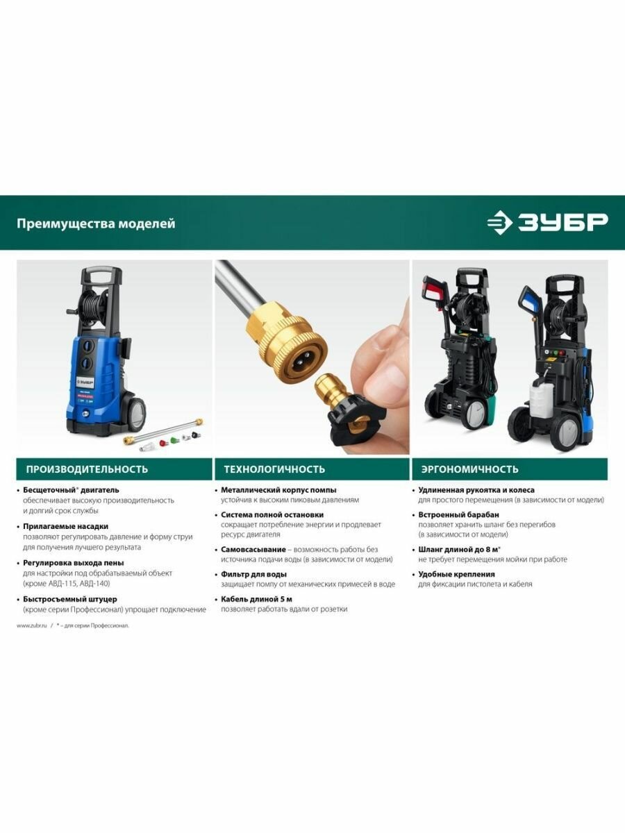 ЗУБР 2100 Вт, 160 Атм, мойка высокого давления АВД-160 Мастер