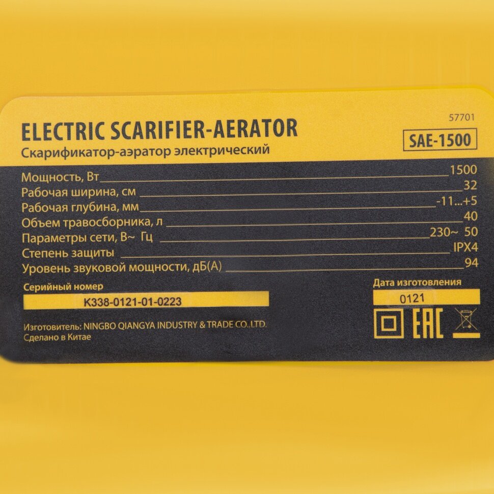 Скарификатор-аэратор электрический SAE-1500, 1500 Вт, -11/+5 мм, 32 cм Denzel интересное: