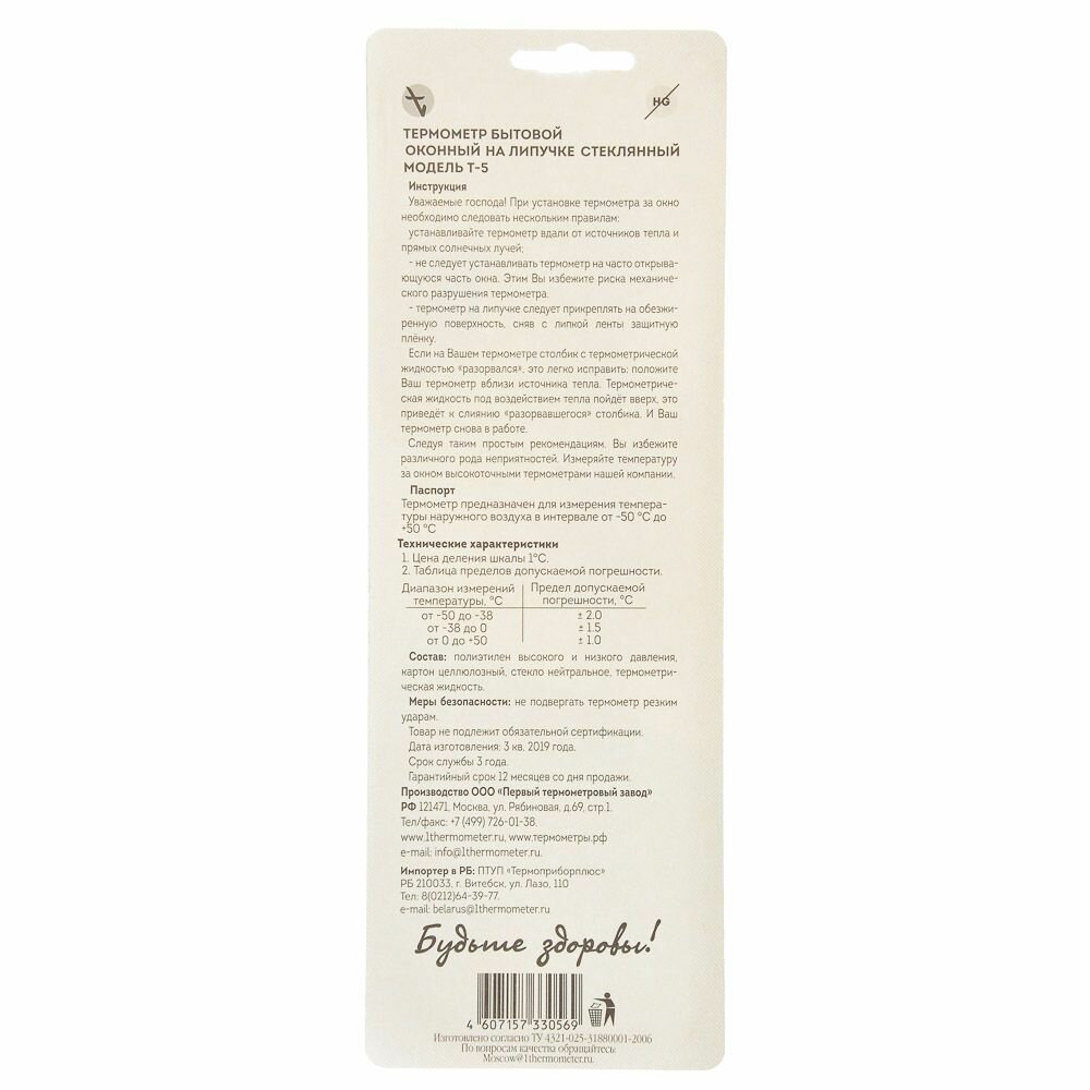 Термометр оконный ПТЗ крепление на гвозди, диапазон от -50 до +50C (ТБ-202) интересное: