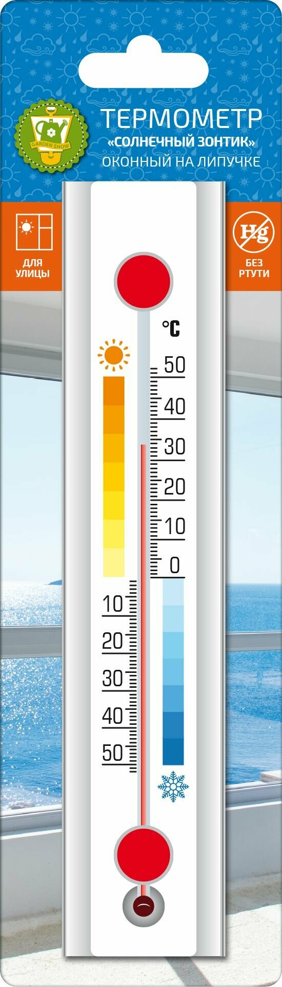 Купить Термометр жидкостный GARDEN SHOW Солнечный зонтик оконный 10х27 см