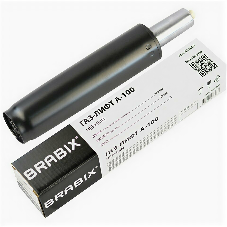 Купить Газлифт BRABIX A-100 короткий, черный, длина в открытом виде 346 мм, d50 мм, класс 2, 532001