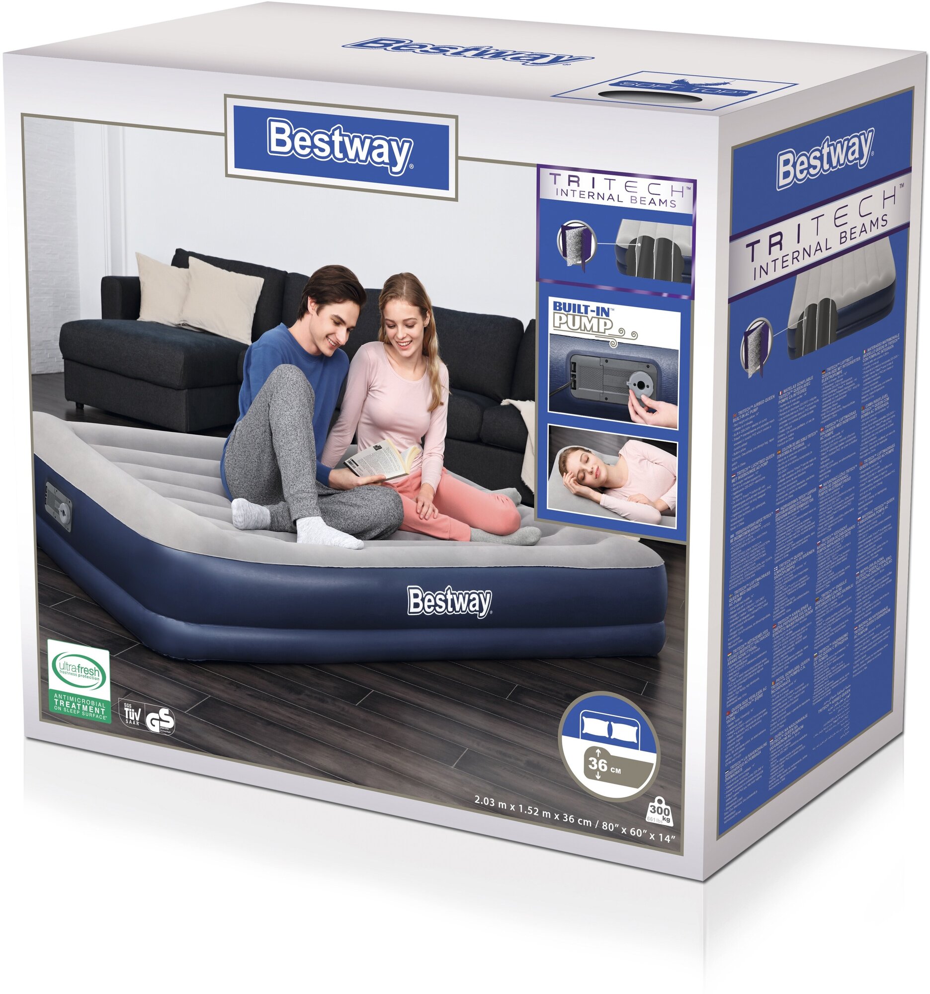 Купить Кровать надувная Bestway с подголовником, Tritech Airbed, 203х152х36 см, встроенный насос (67725)