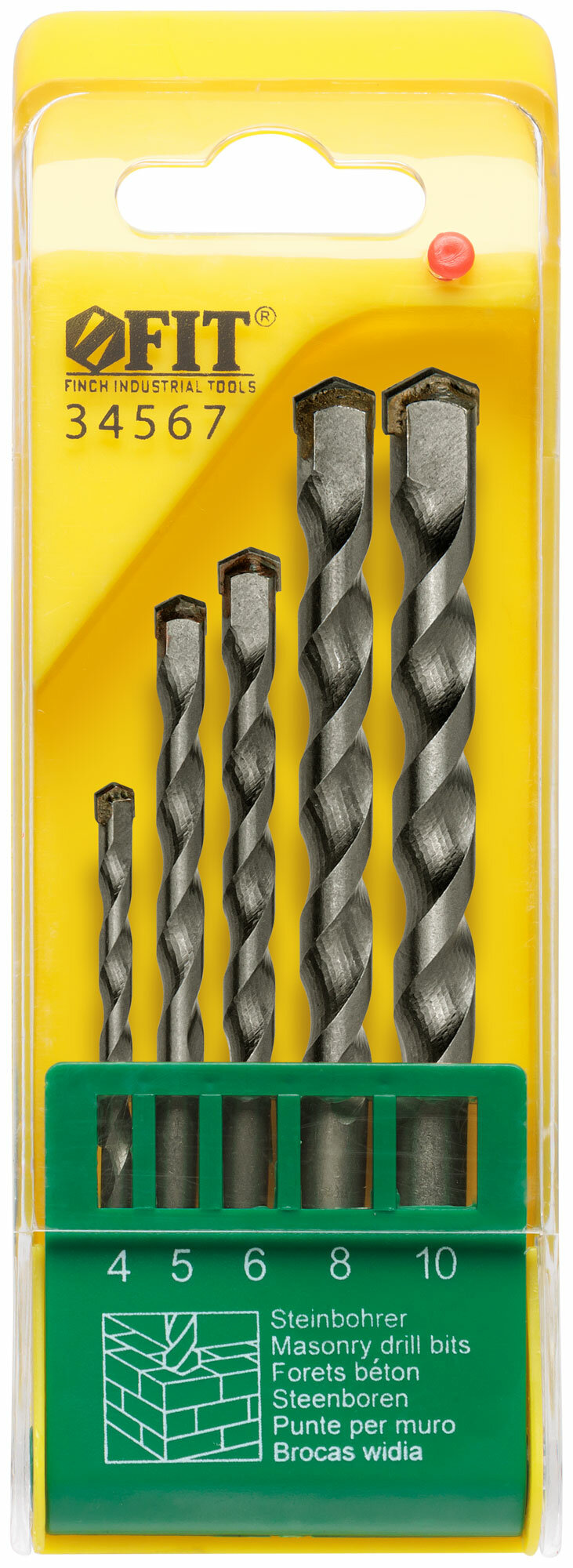 Купить Набор сверл FIT победитовых ударных, цилиндрический хвостовик, 5 шт. (4-5-6-8-10 мм)