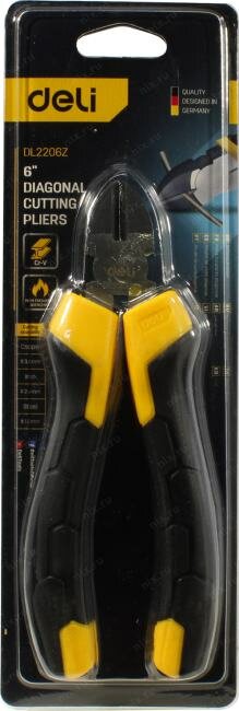 Диагональные бокорезы Deli Dl2206z 160мм, сталь CrV, прорезиненная двухкомпонентная ручка Dl2206z .
