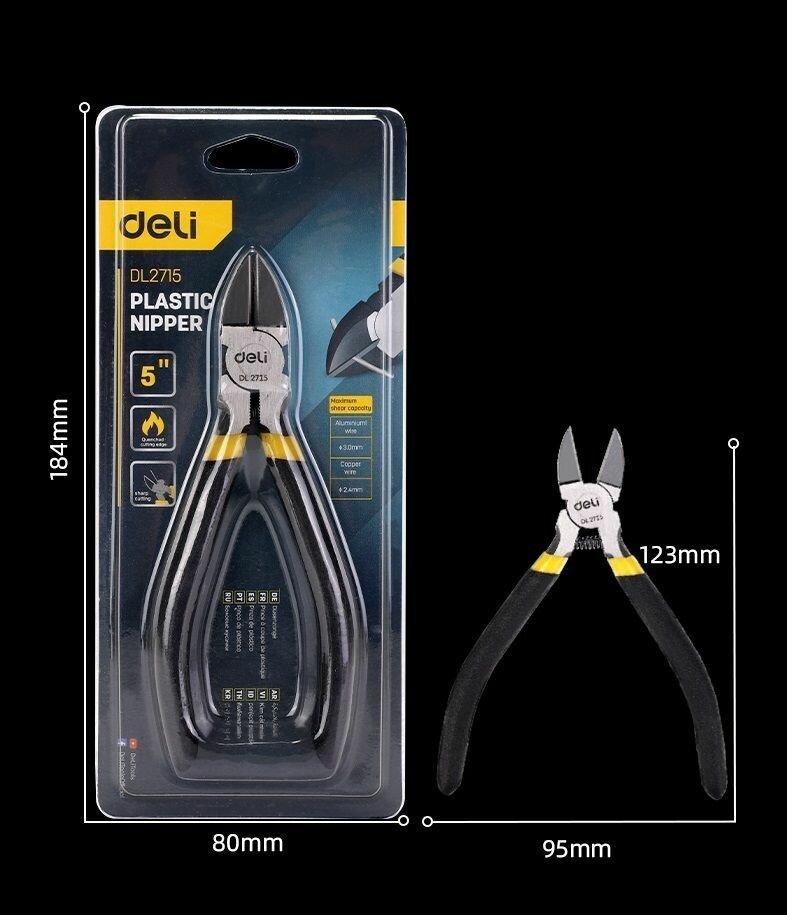 Купить Мини-бокорезы Deli DL2715 125мм (высокоуглеродистая сталь, твердость 56-60HRC, противоскользящая рукоять)