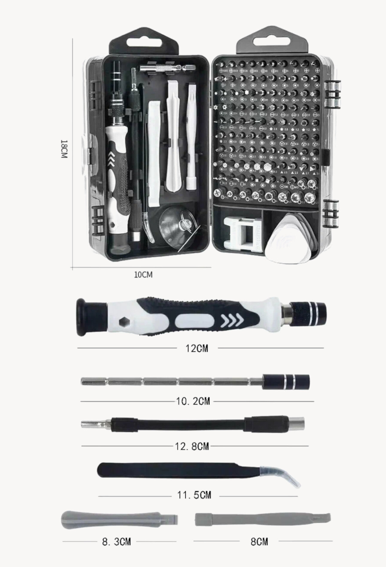 Ниже Вы можете прочитать отзывы на Набор отверток и бит 115 в 1 в кейсе / многофункциональный универсальный набор отверток для точных работ с гибких удлинителем, черный, ознакомится с подробными характеристиками, посмотреть интересные обзоры и фотографии на Набор отверток и бит 115 в 1 в кейсе / многофункциональный универсальный набор отверток для точных работ с гибких удлинителем, черный.