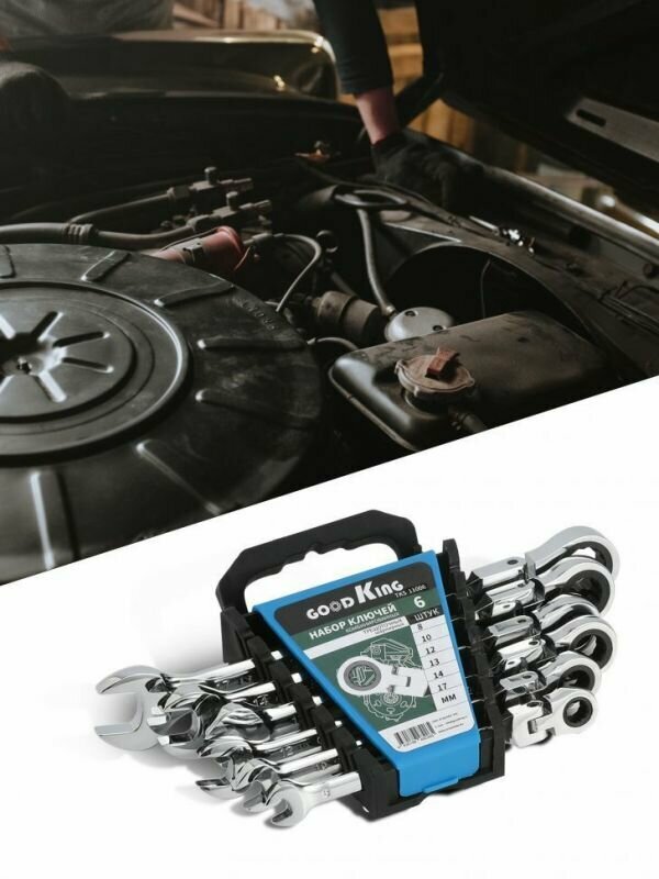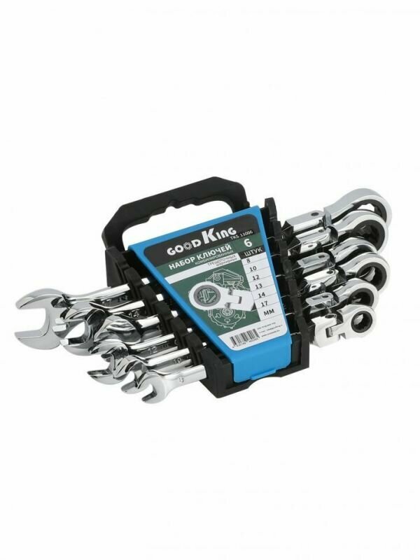 Набор ключей комбинированных трещоточных шарнирных GOODKING TKS-11006, 6 предметов (8, 10, 12, 13, 14, 17мм) в пластиковом держателе интересное: