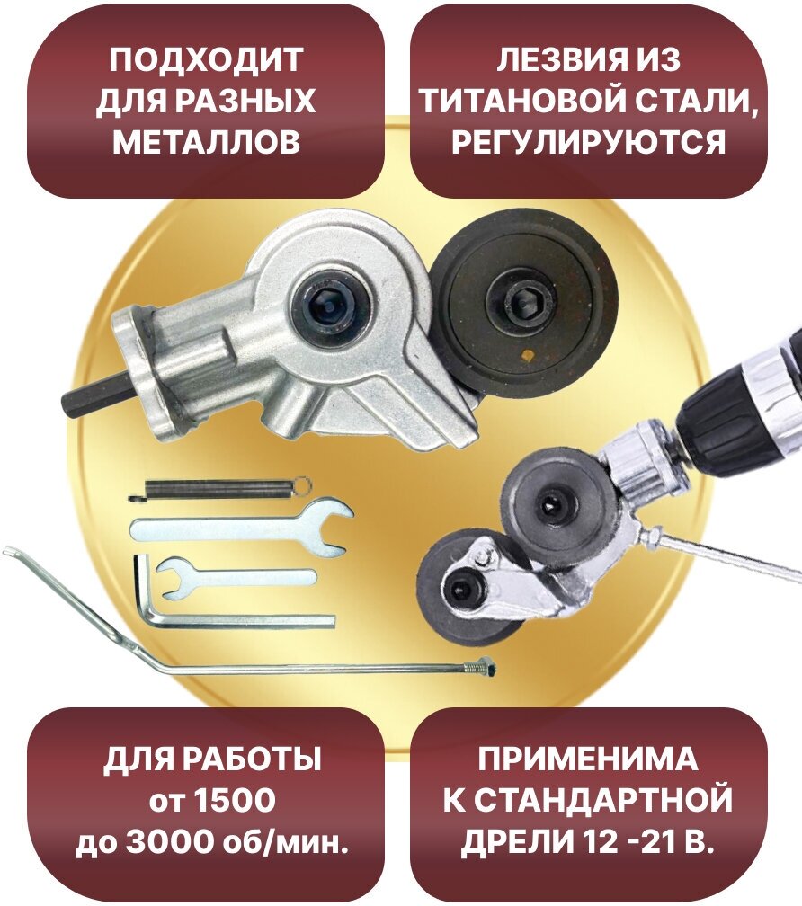 Купить Насадка на дрель, шуруповёрт для резки металла , ножницы по металлу 0,3 -1,5 мм