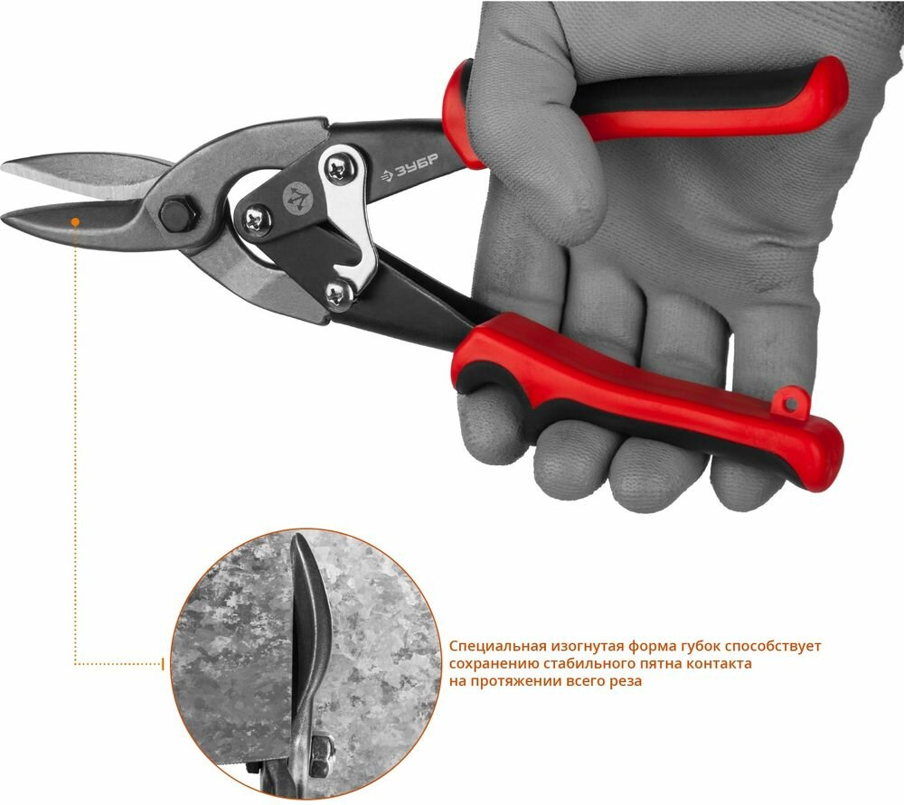 Ножницы по металлу ЗУБР 23140-S двухрычажные, прямые, У8А, 250 мм