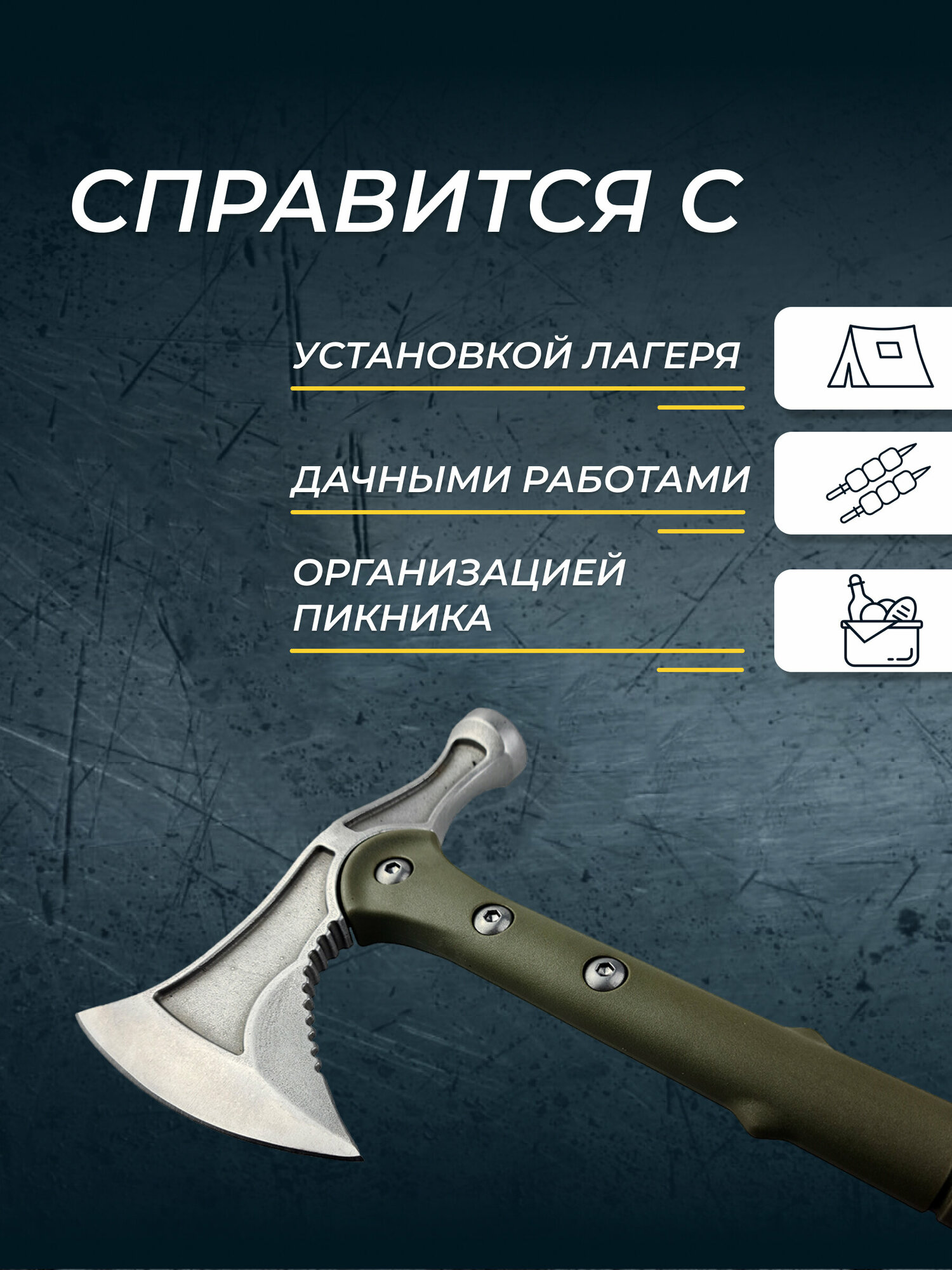 Топор - мультитул с пилой в рукояти. Топор туристический / Топор для рыбалки / Топор для похода / Топор в машину / Топор для выживания.