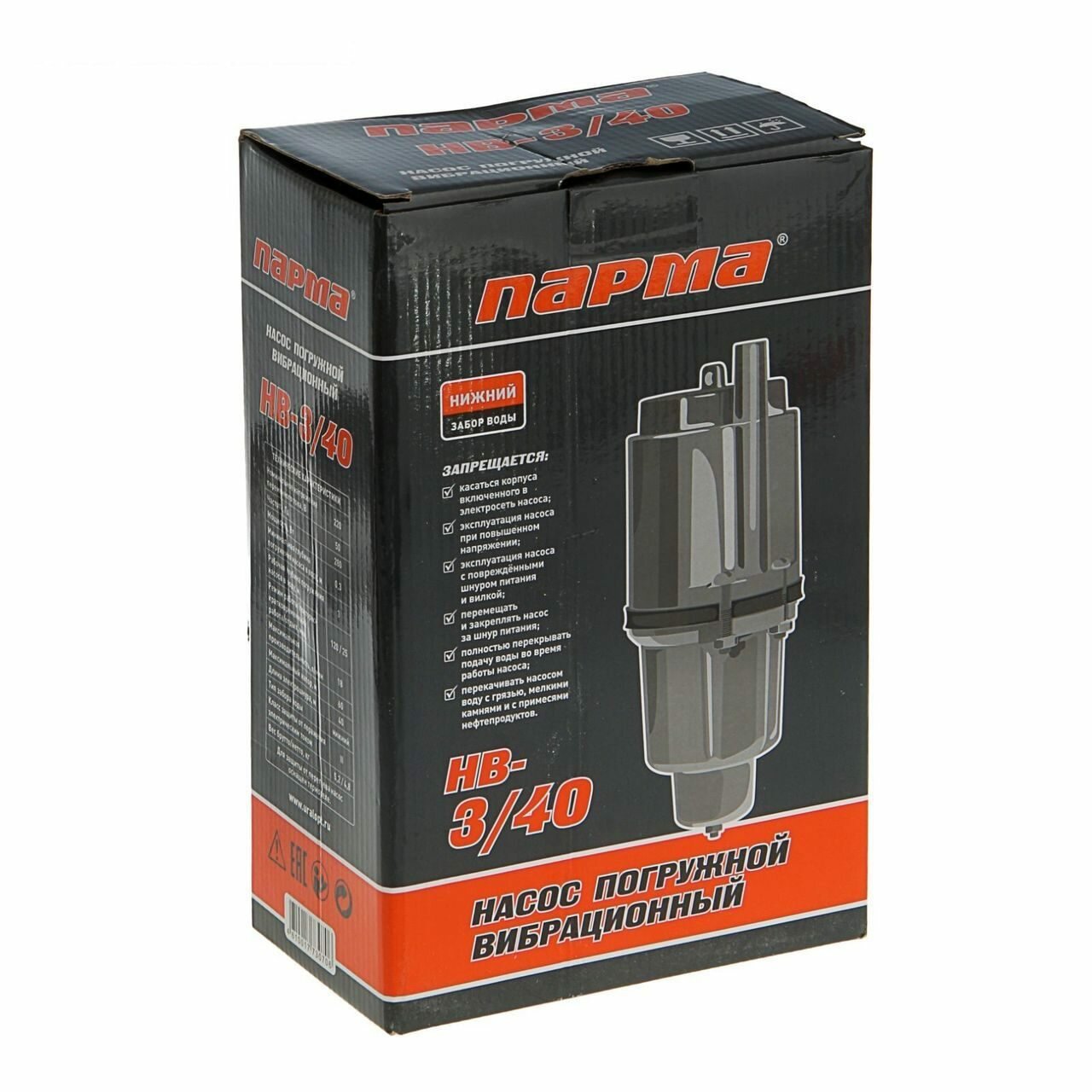 Насос вибрационный Парма НВ-3/40 (280Вт,18л/мин,погр.3м,напор 72м,кабель 40м,верх.забор,ф100мм)4.9кг