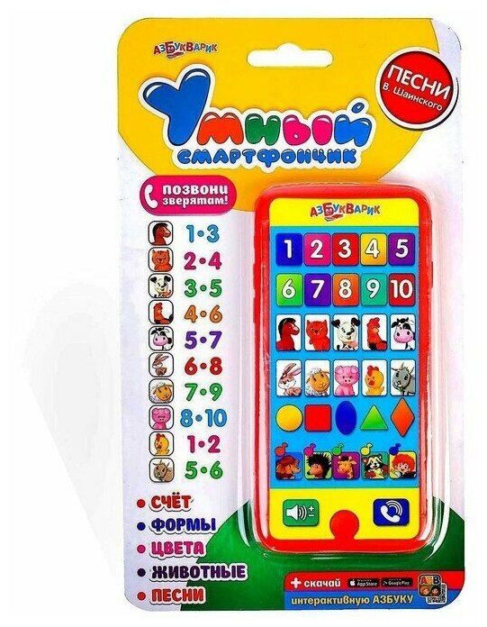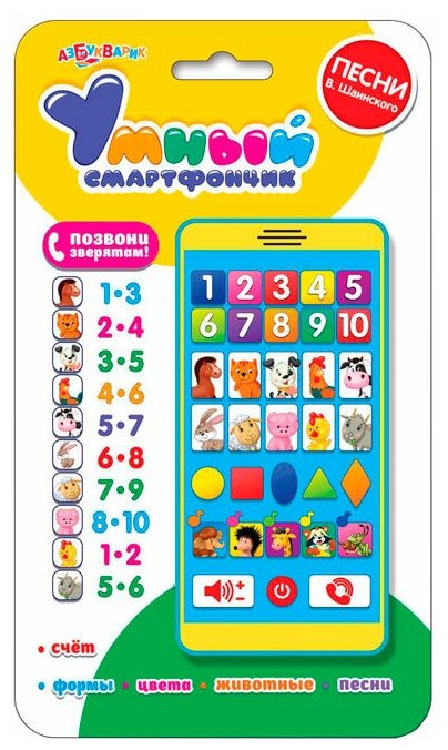 Смартфончик умный (счет, формы, цифры, животные, песни Шаинского) 28105-6/08059-8