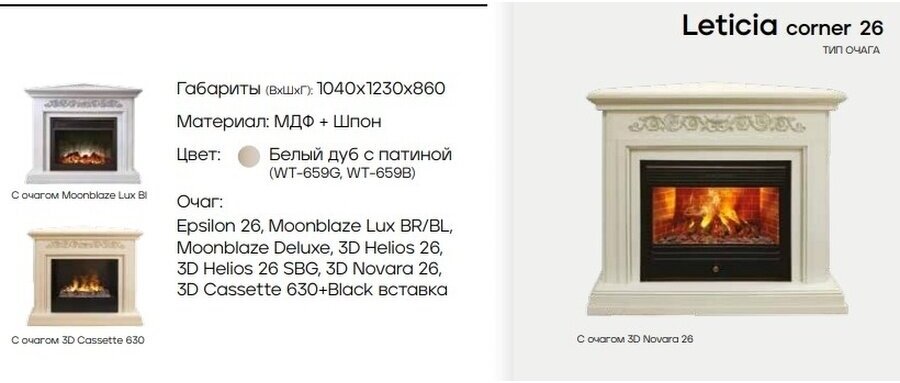 Электрокамин Real Flame Leticia Corner 26 WT-659G с очагом 3D Cassette 630 + Black интересное: