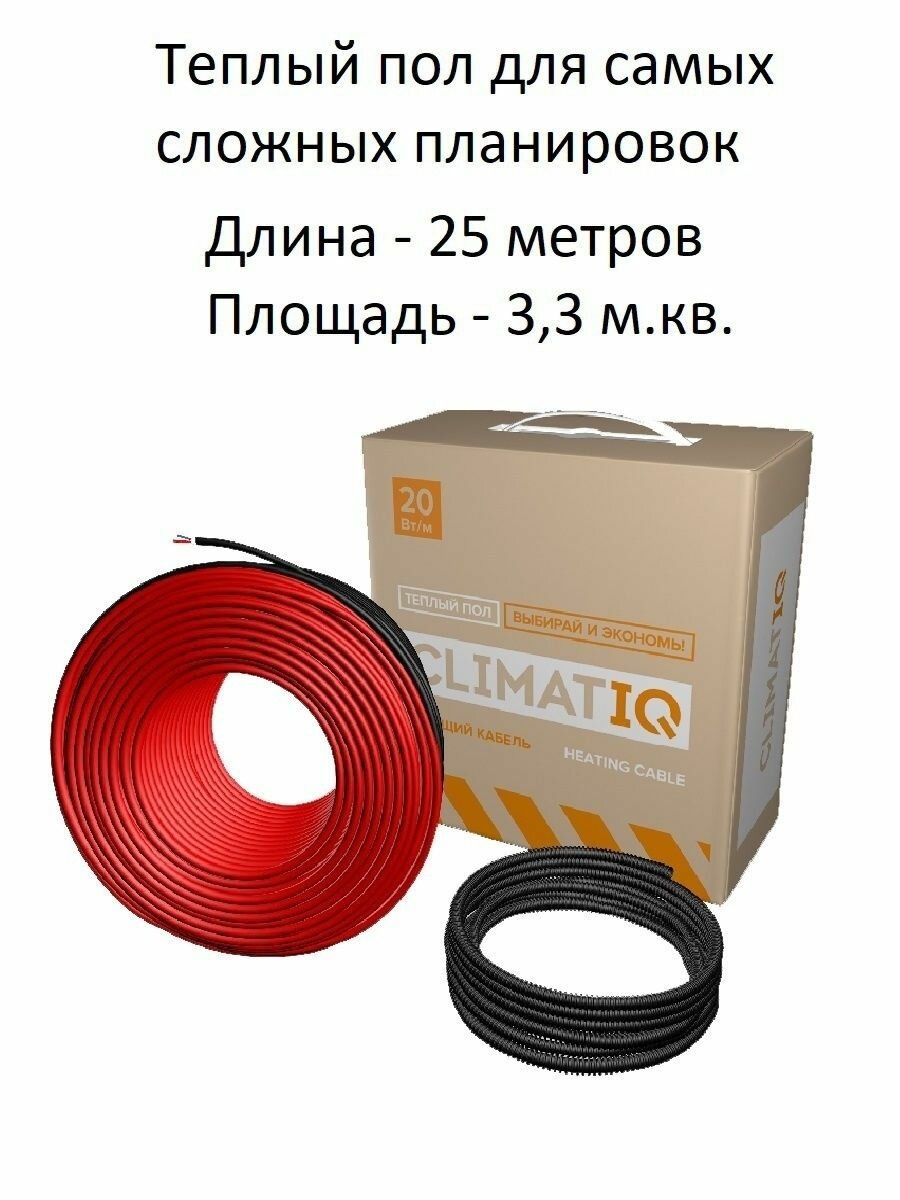 Греющий кабель CLIMATIQ CABLE 25 m 500Вт/3.3м.кв.