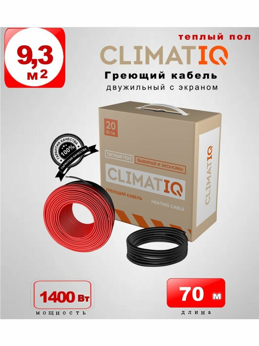 Греющий кабель для теплого пола CLIMATIQ CABLE 70 метров, кабельный теплый пол двужильный экранированный в стяжку цементную песчаную