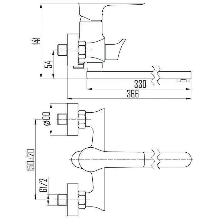 Смеситель для ванны с душем Devida Zutto DVS1223-14, с длинным изливом, хром