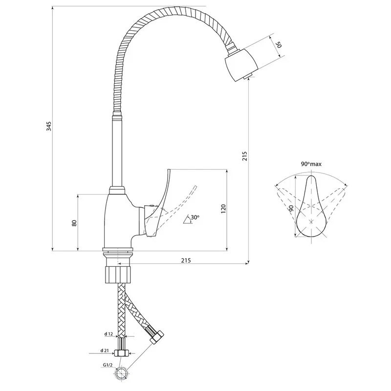 Смеситель для кухни с гибким изливом, В25 славен