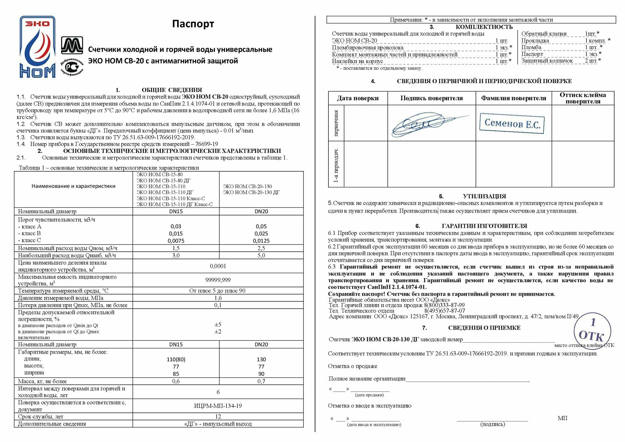 | Отзыв: | Дата поставлена на коробочке, рядом с номером счётчика, а не в паспорте. Я её сфоткала и вместе с актом об установке отправила в водоканал, их всё устроило. |