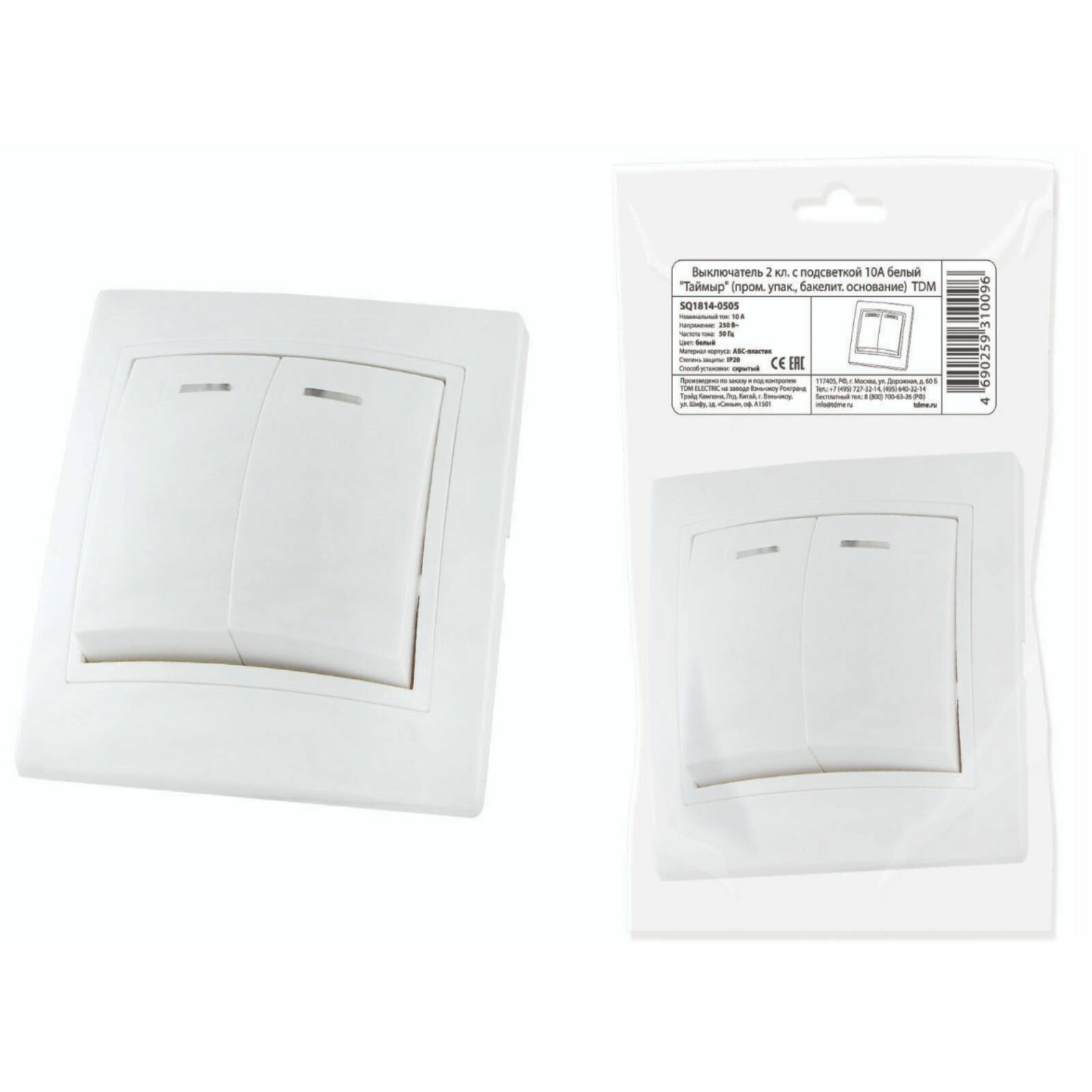 Купить Выключатель 2 кл. с подсветкой 10А белый "Таймыр" (пром. упак,, бакелит. основание) TDM