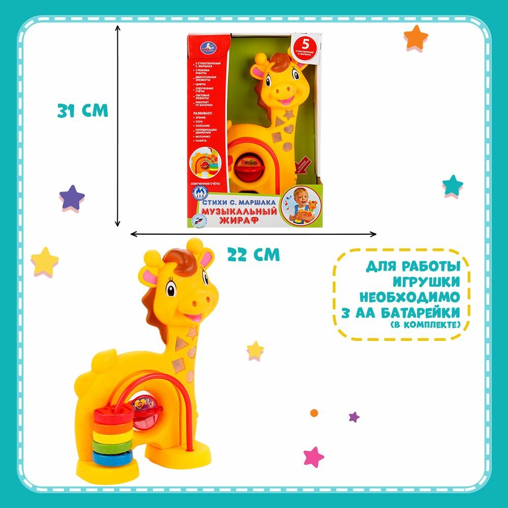 Игрушка музыкальная Умка Жираф со стихами С.Маршака интересное:
