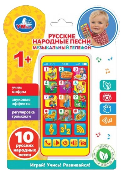 Музыкальный телефон русские народные песни. 10 песен, учим цифры.блистер