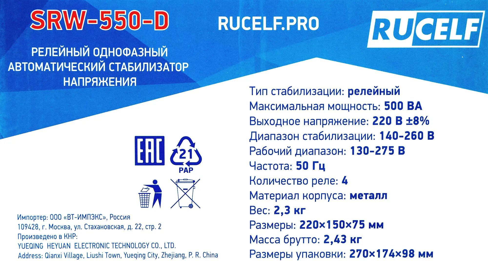 Стабилизатор напряжения Rucelf SRW-550-D 0.4 кВт интересное: