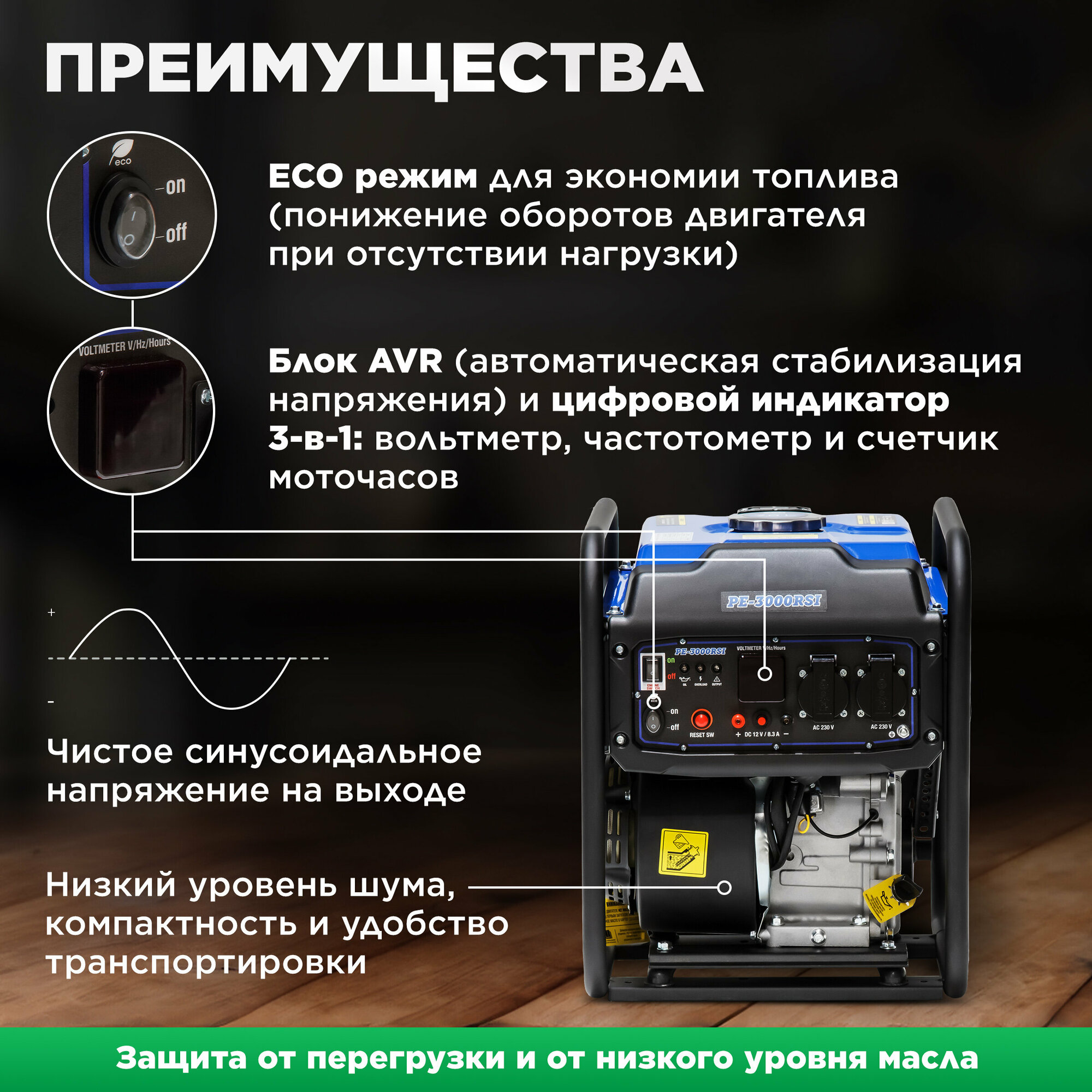 Электростанция (генератор бензиновый) ECO PE-3000RSI (EC1561-7) интересное: