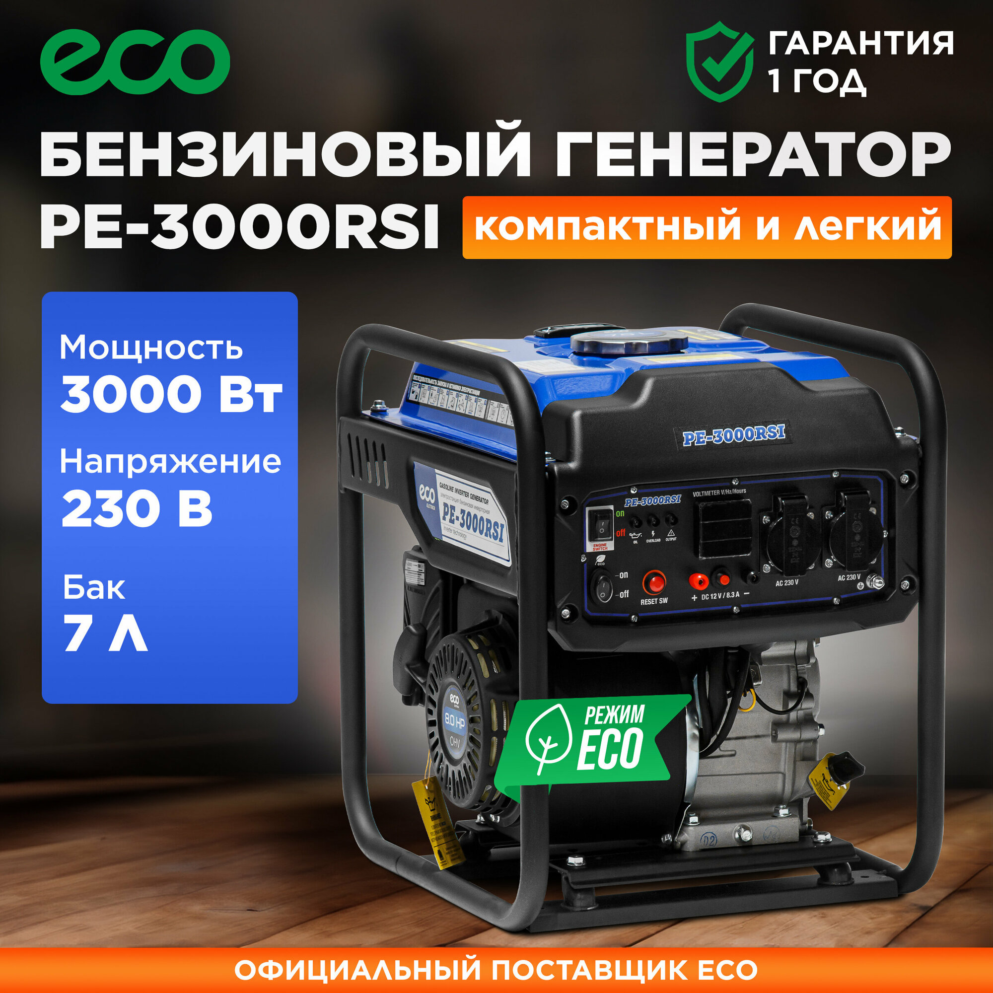 Генератор бензиновый бензогенератор ECO PE-3000RSI инверторный, 3.0 кВт, 230 В (EC1561-7)