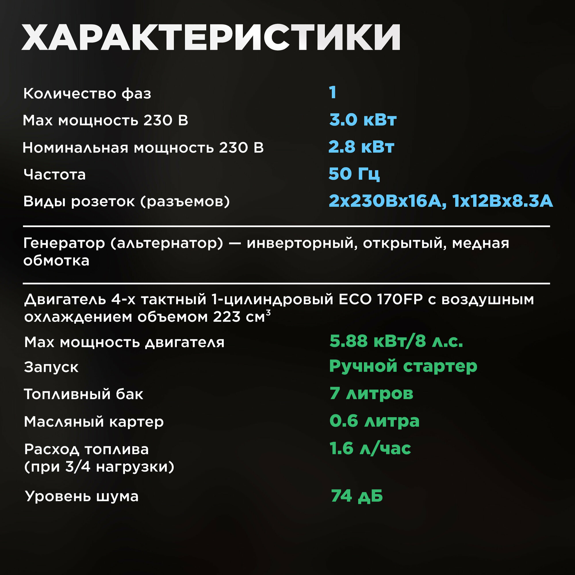| Особенности | инверторный генератор |