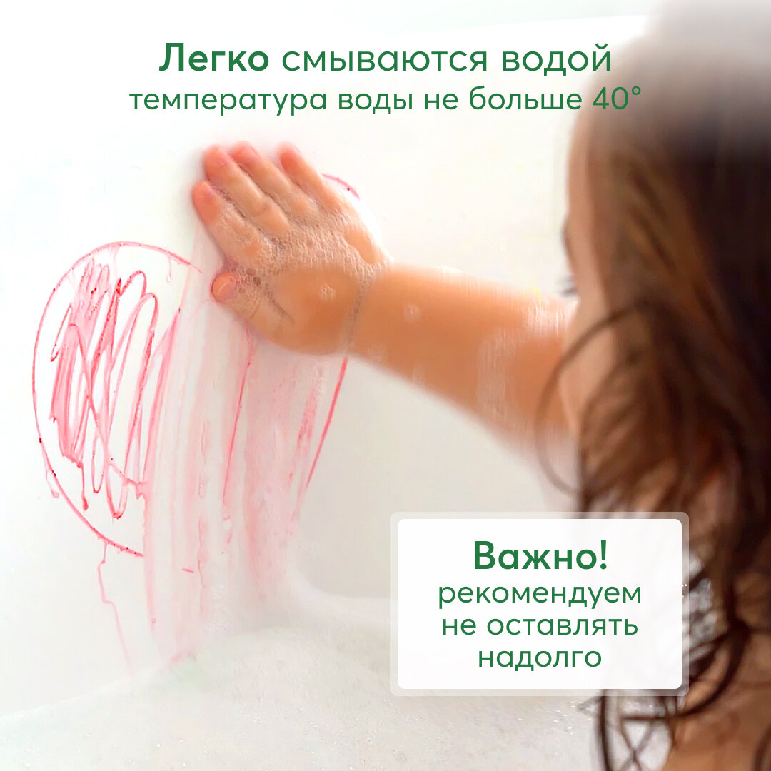 | Плюсы: | Легко смывается. Ребёнку понравилось рисовать в ванной. |