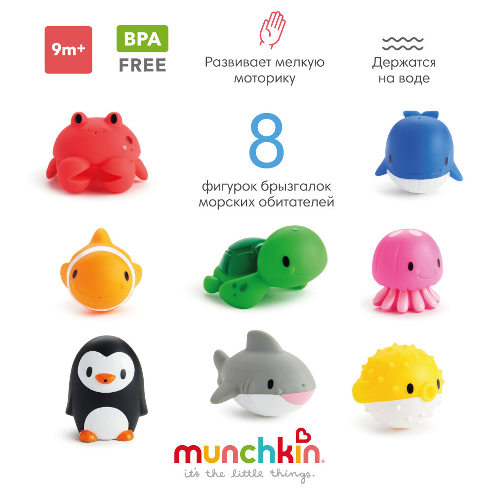 Munchkin игрушки для ванны Морские животные Ocean™ 8 шт от 9 мес интересное:
