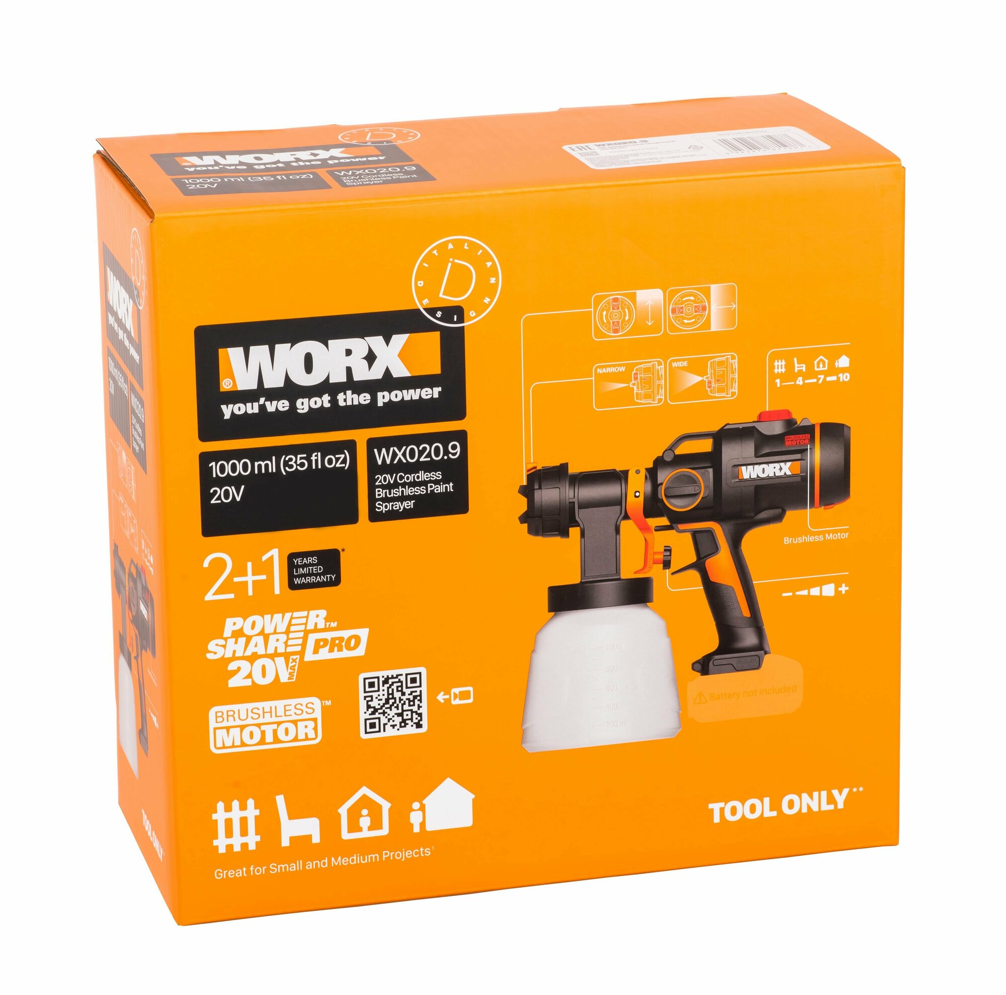 Купить Краскопульт аккумуляторный, бесщеточный, без АКБ и ЗУ WORX (WX020.9)