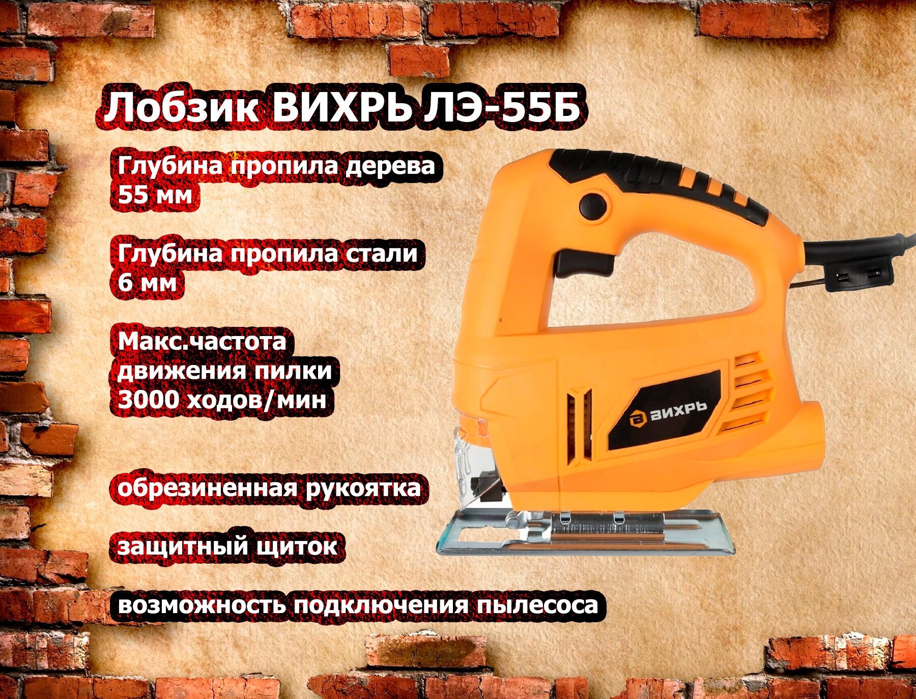 Электролобзик ЛЭ-55Б вихрь 500Вт 3000об/минход 55мм дер 55мм металл 6мм 1,8кг ,
